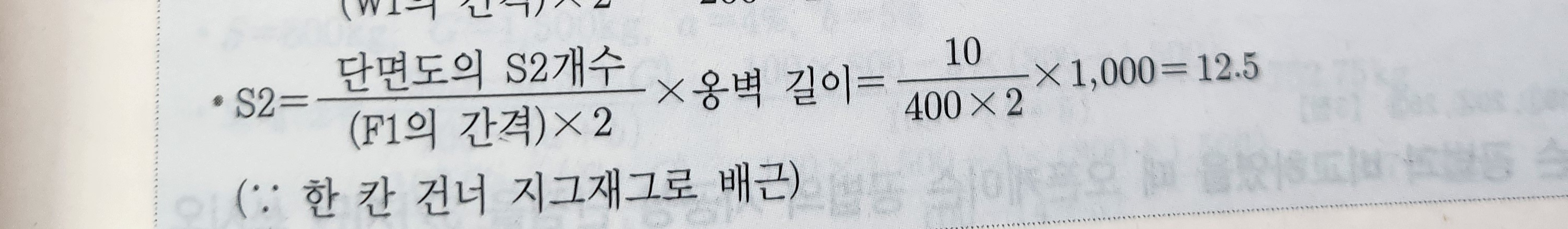 S2철근량 구할때 풀이에서는 F1의 간격을 쓰라고 나오는데 F1간격은 조건이서 200mm라고 나오지만 풀이는 400mm 로 푸는 이유가 있나요?