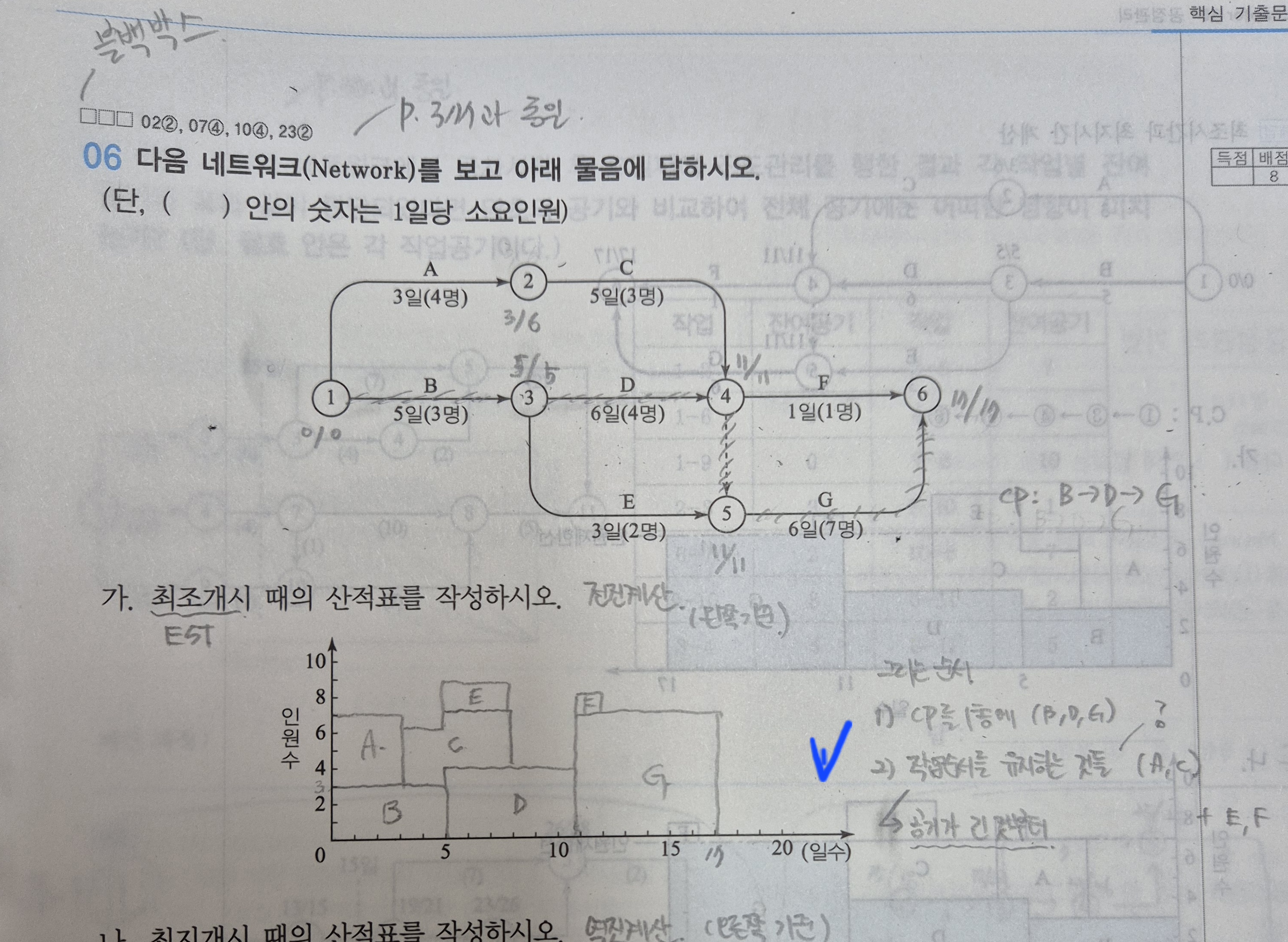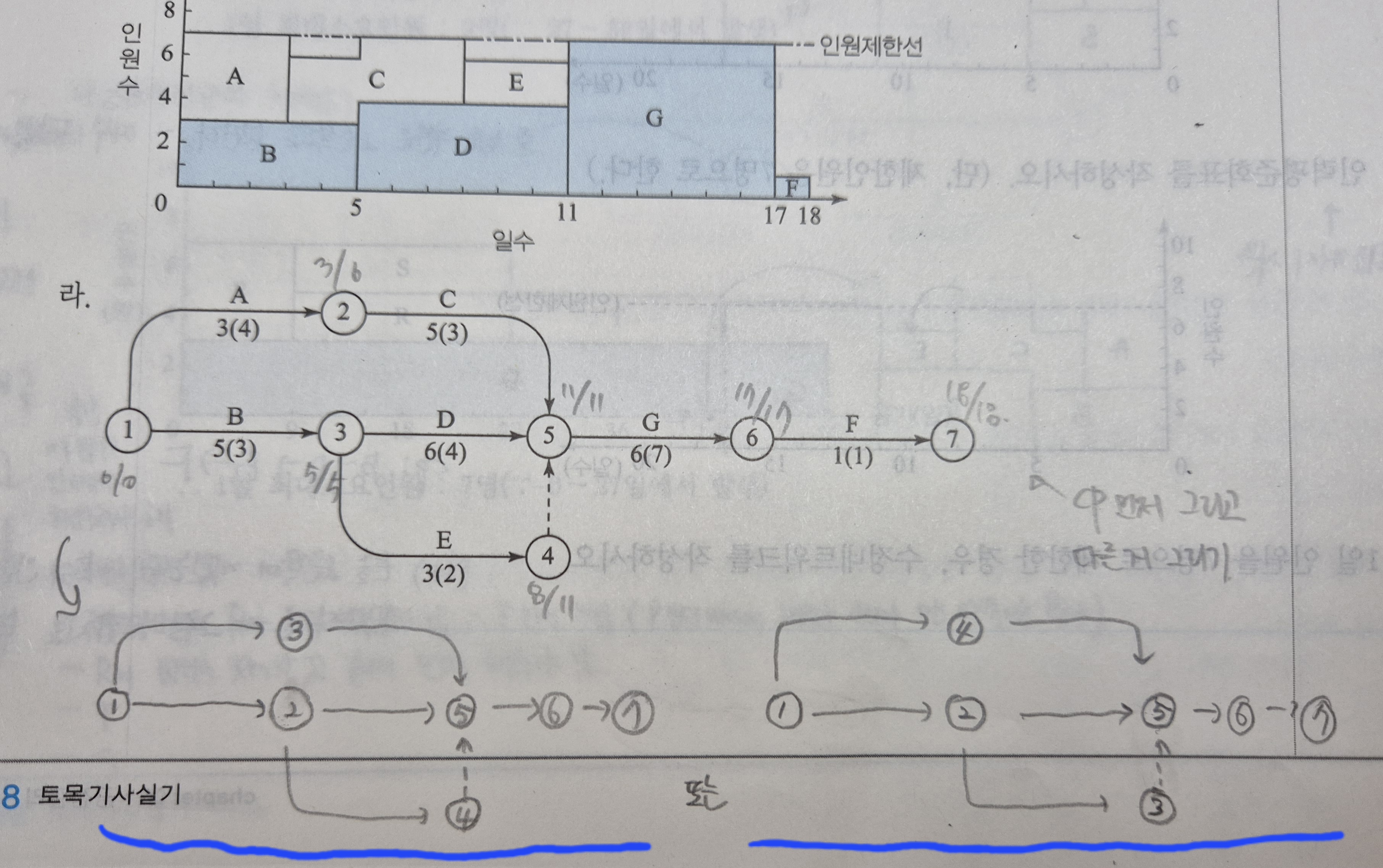 B D G를 제외하면 지금 남은 작업들중에서 작업일수를 보면