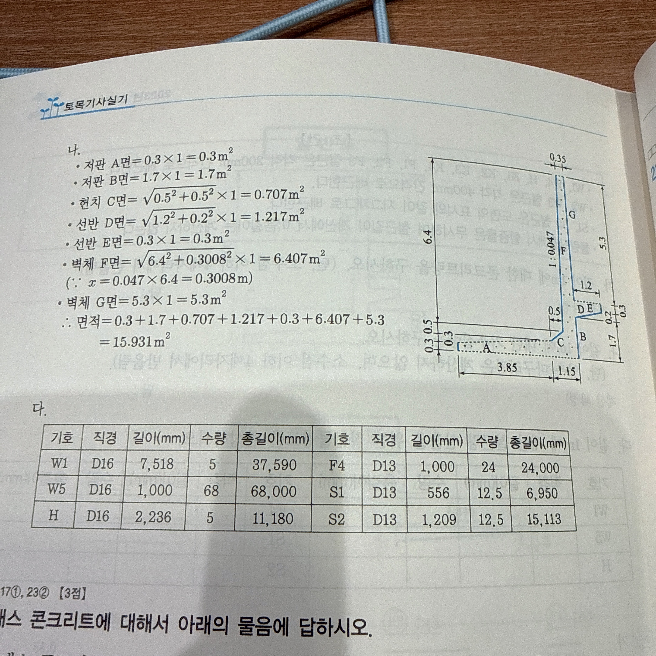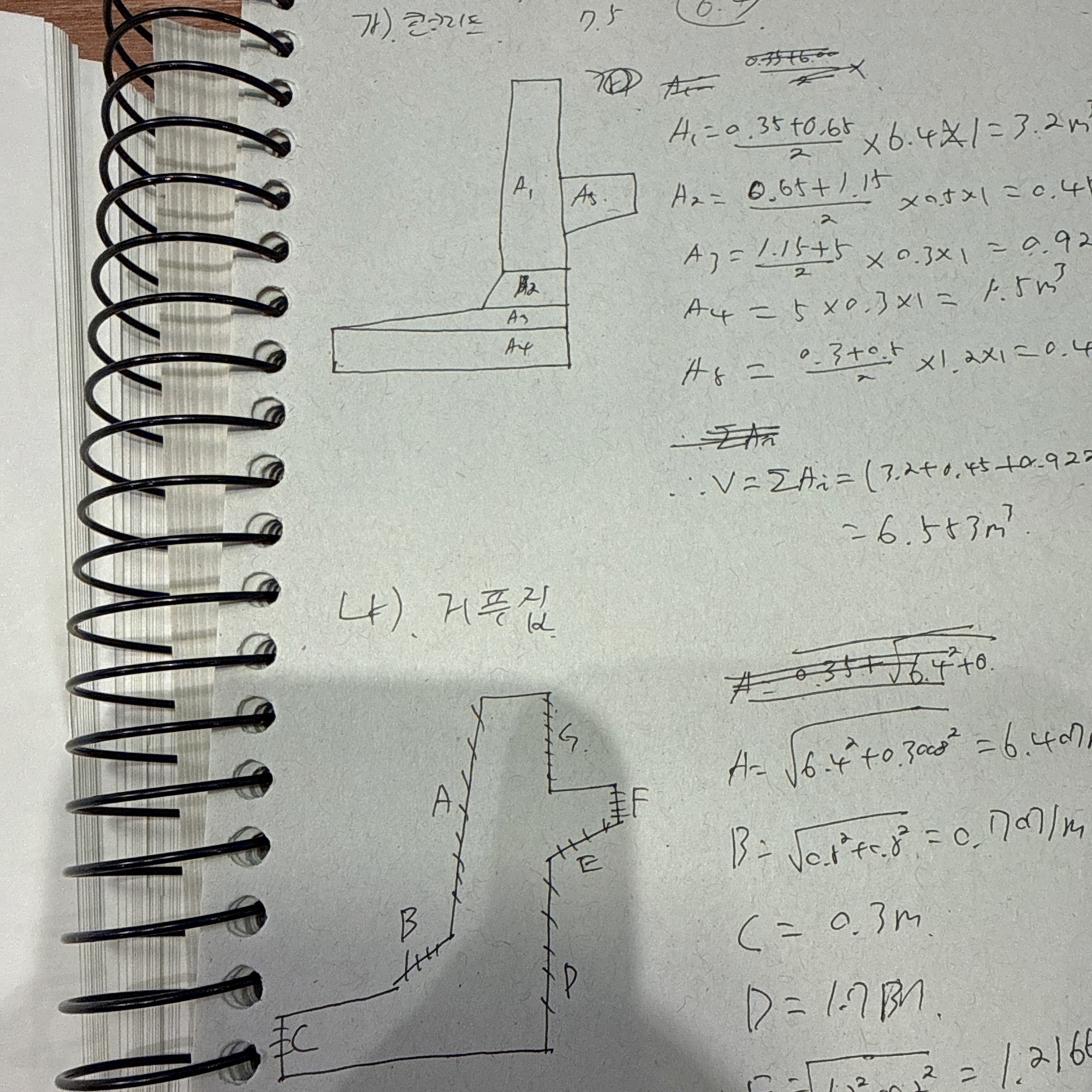 나) 거푸집은 그림을 빗금칠 후 A,B••• 표시를 했는데