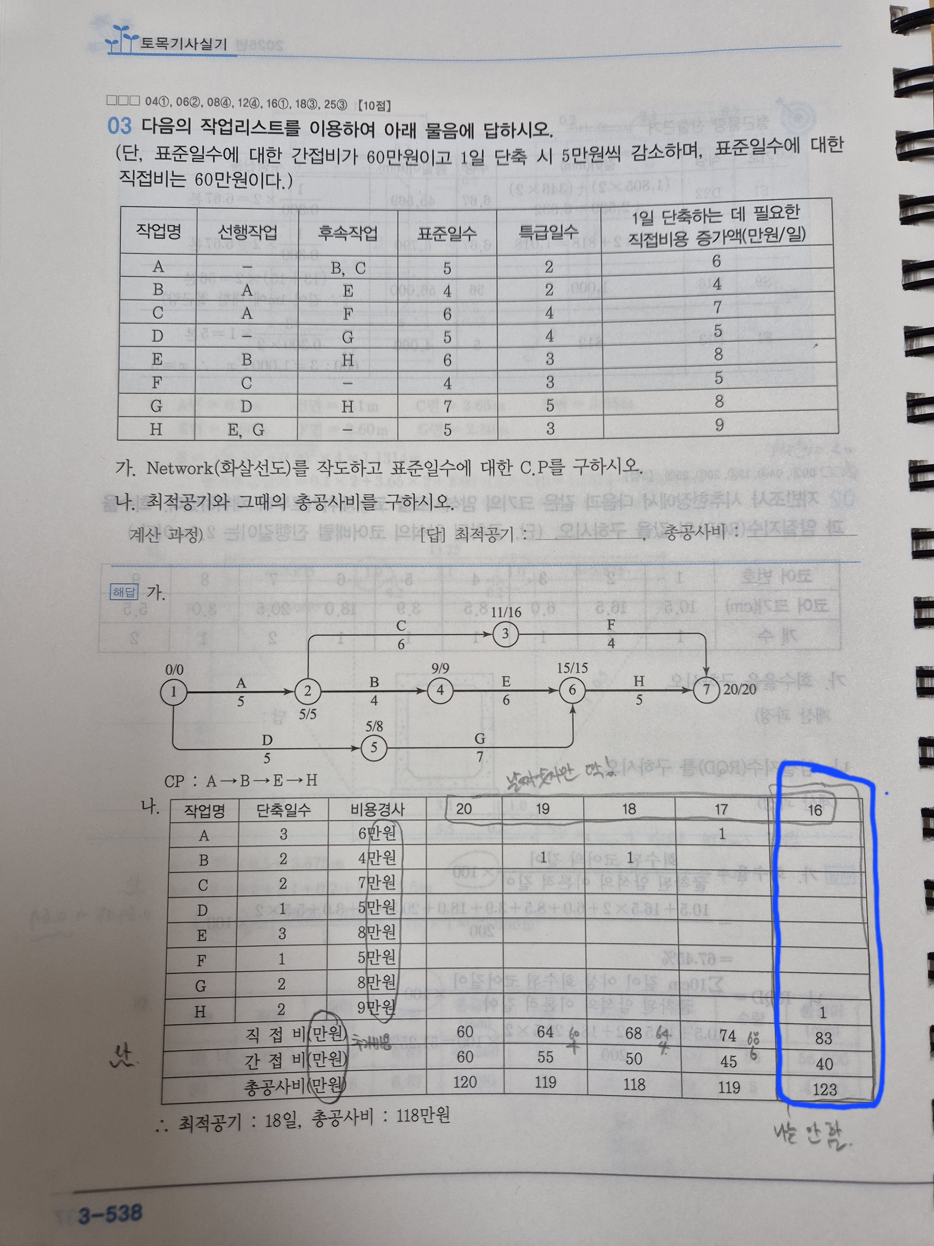 해설정답 및 교수님 강의와 제가 그린 공정표 상의 event 숫자가 다른데 혹시 저의 것도 정답인가요?