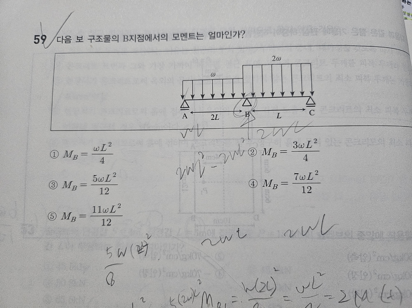 2. B점을 고정단으로 보고 열쇠 WL^2/8로 해도 안풀리는데 풀이가 궁금합니다ㅜㅜ