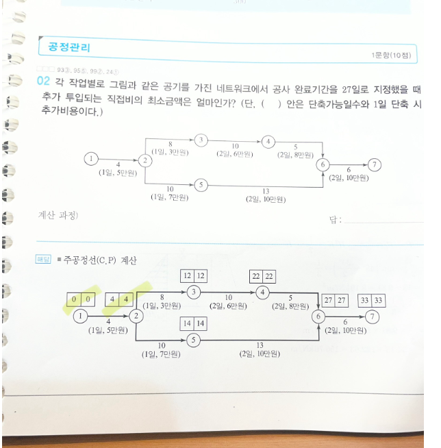 문제조건에 PERT기법에 대한 언급이 누락된 것으로 보여집니다.