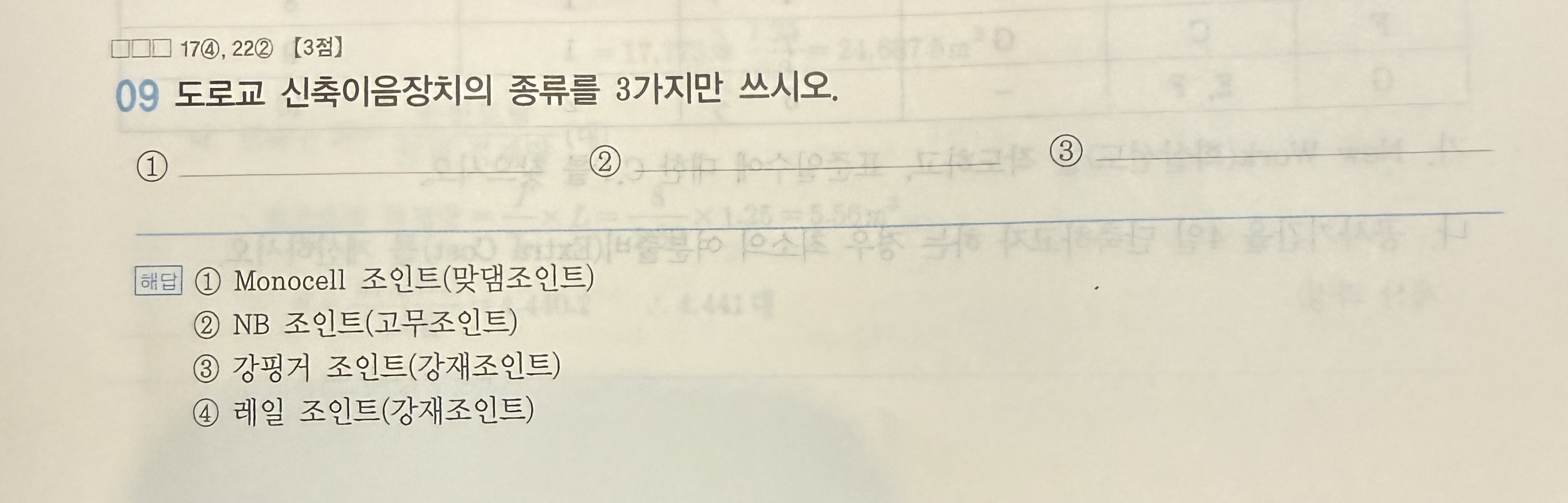 질문하신 답안에서 맞댐조인트는 강재조인트의 한 종류로 분류 될수 있기 때문에 해설에 표현되어 있는 종류로 답안을 표현하시거나 고무조인트, 강재조인트, 복합식 조인트 등으로 표현하시는 게 좋습니다.