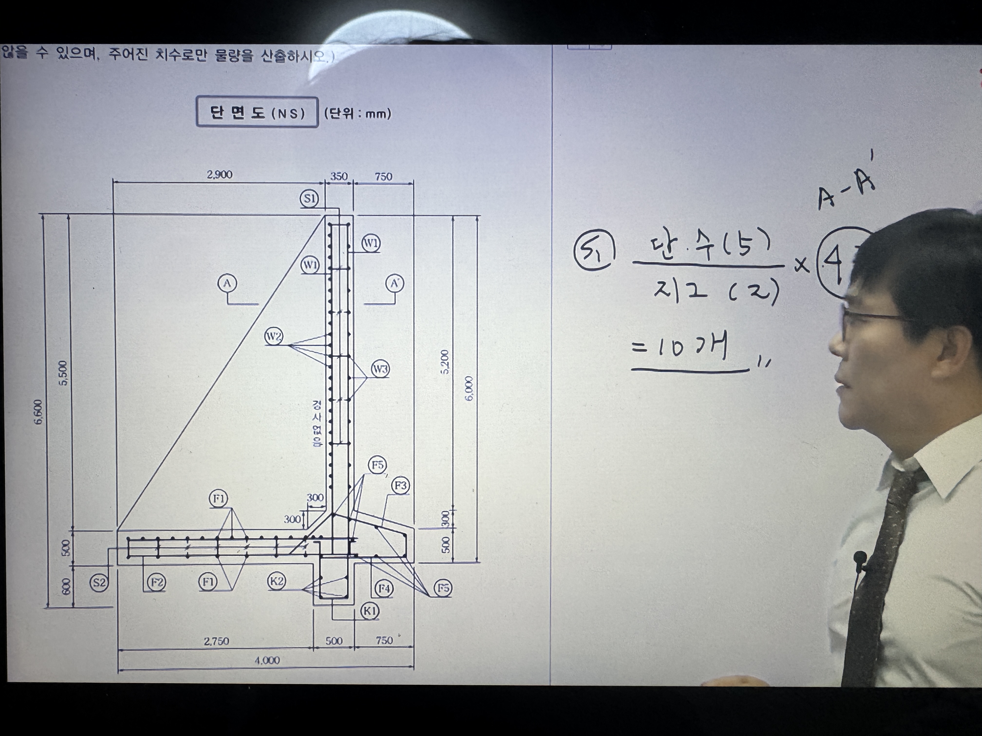 • 강의에서 S1 철근의 수량산출이 10개라고 하셨는데,