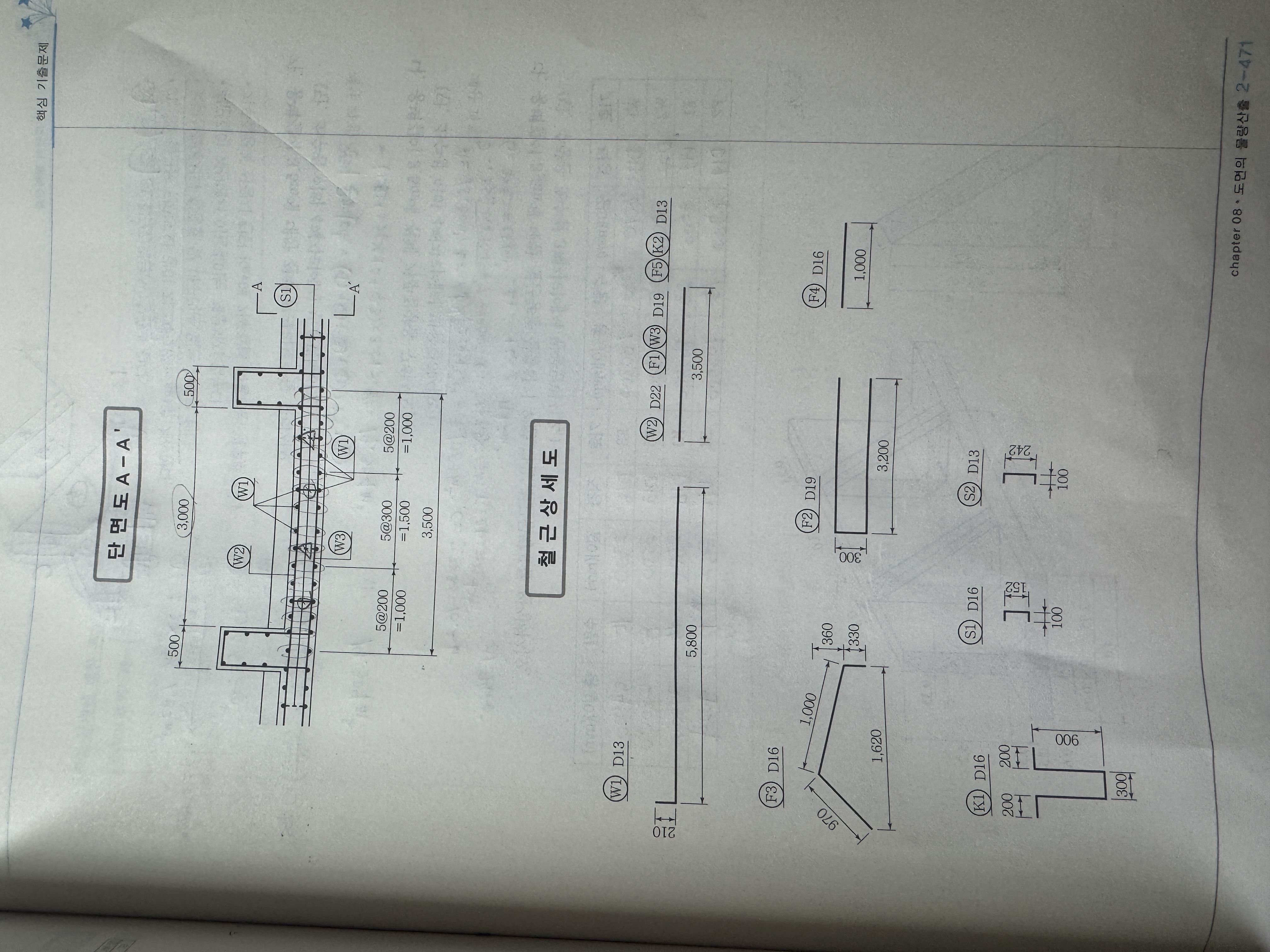 1. S1철근이 단면도에 5개인 경우와 6개인 경우가 있습니다.