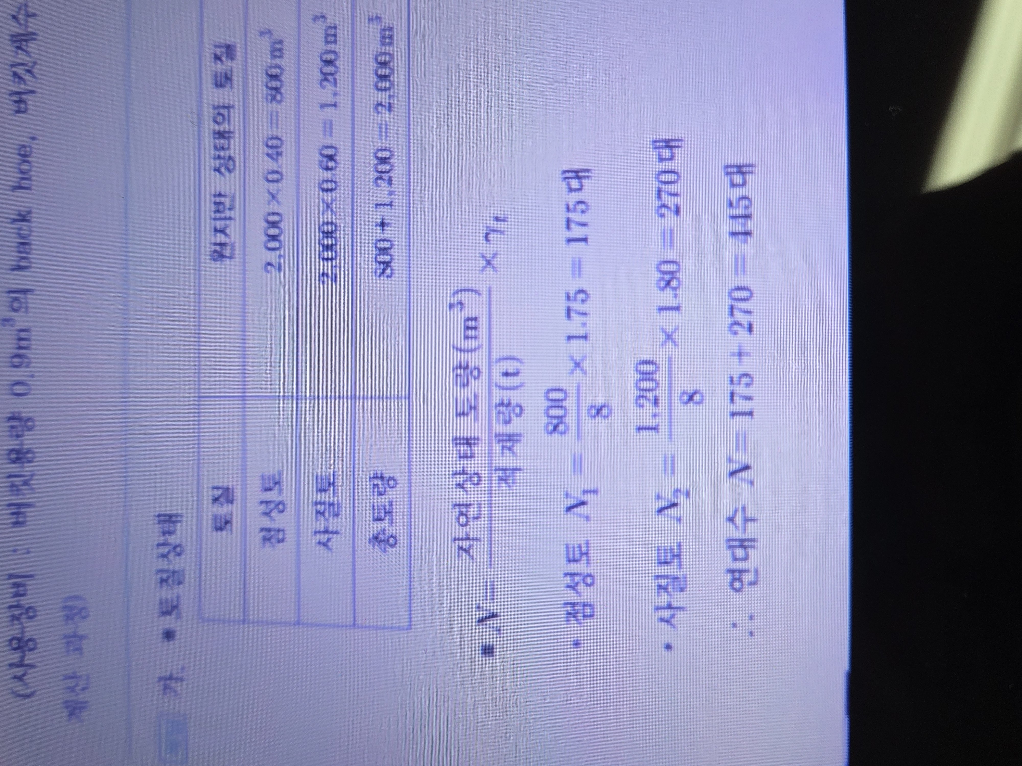 질문하신 방법처럼 계산하셔도 됩니다. 단, 문제에서 운반에 필요한 트럭대수면 사질토(1200)랑 점성토(800) 각 토량에 L을 곱하여 운반토량으로 만든상태에서 트럭의 적재중량 8t으로 나눌것이 아니라 트럭의 적재체적 qt를 나눠서 각 연대수를 산출해야 합니다.