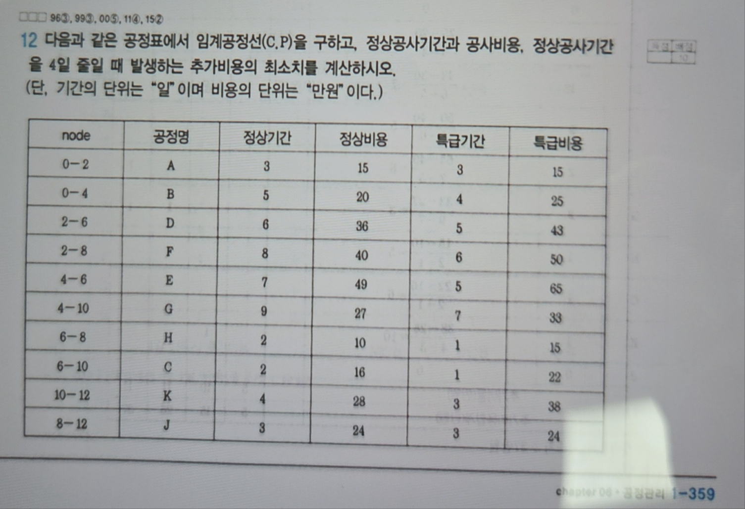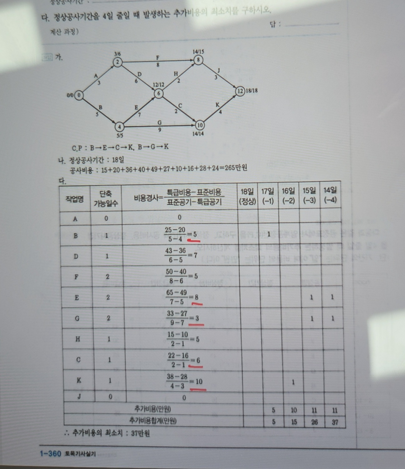 답안에는 B 다음 K작업을 단축하는게 이해가 안돼요