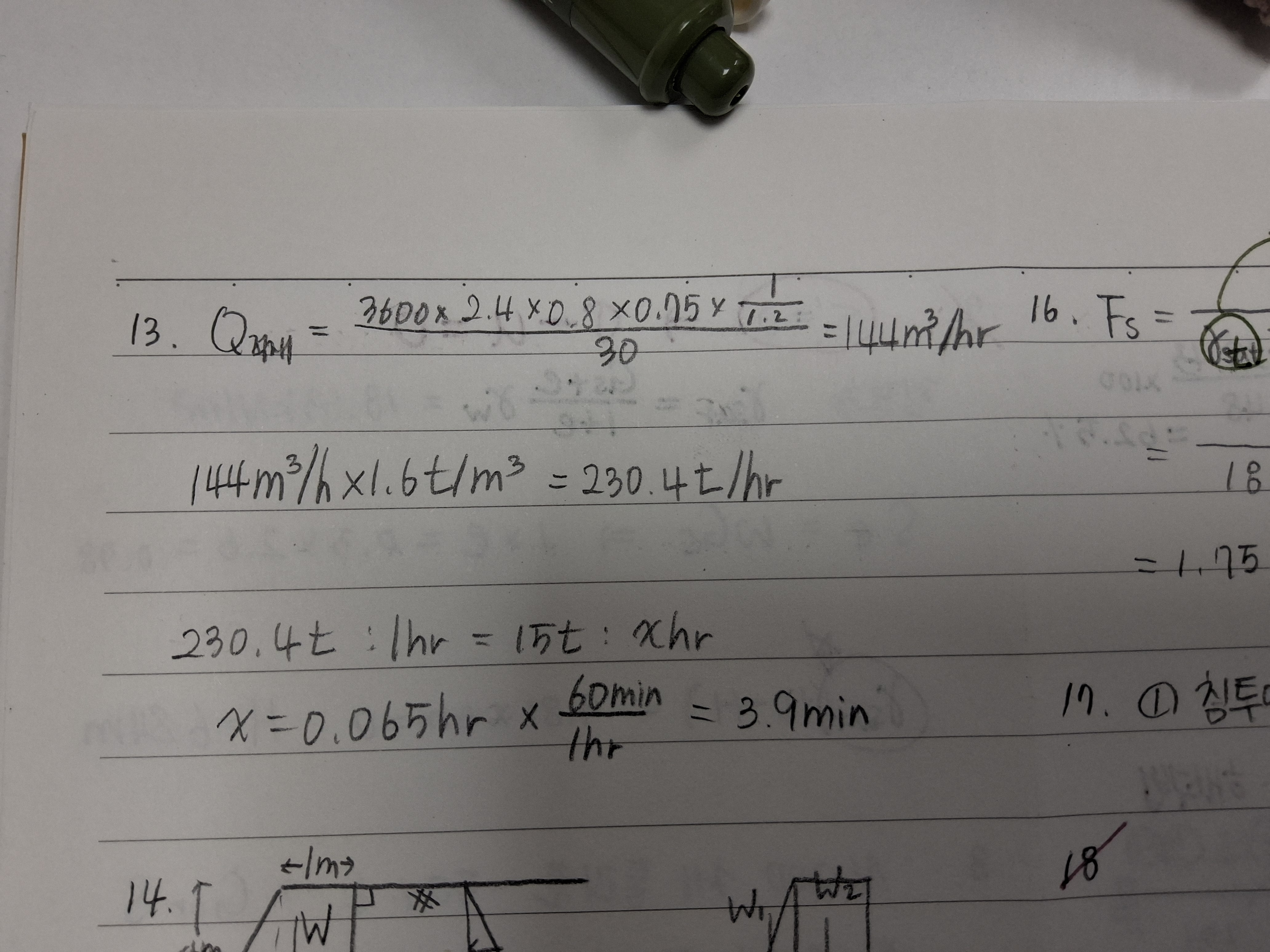 적재시간을 구하지 않고 백호의 시간당 작업량을 구해 15톤 트럭에 싣는 시간을 계산해 3.9분 정답이 나옵니다. 이런 경우 오답 처리 될까요?