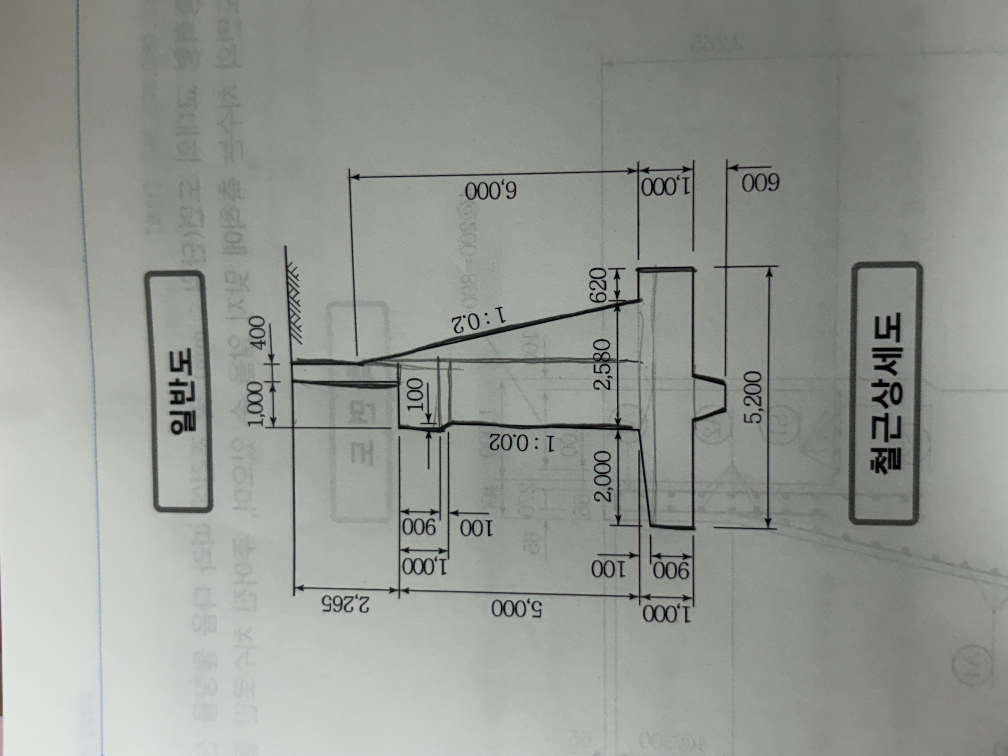 안녕하세요. 실기 기출문제 수강하고 있는 학생 입니다. 반중력형 콘크리트량 산출할때 면적을 이렇게 나누어도 되는지 궁금합니다.