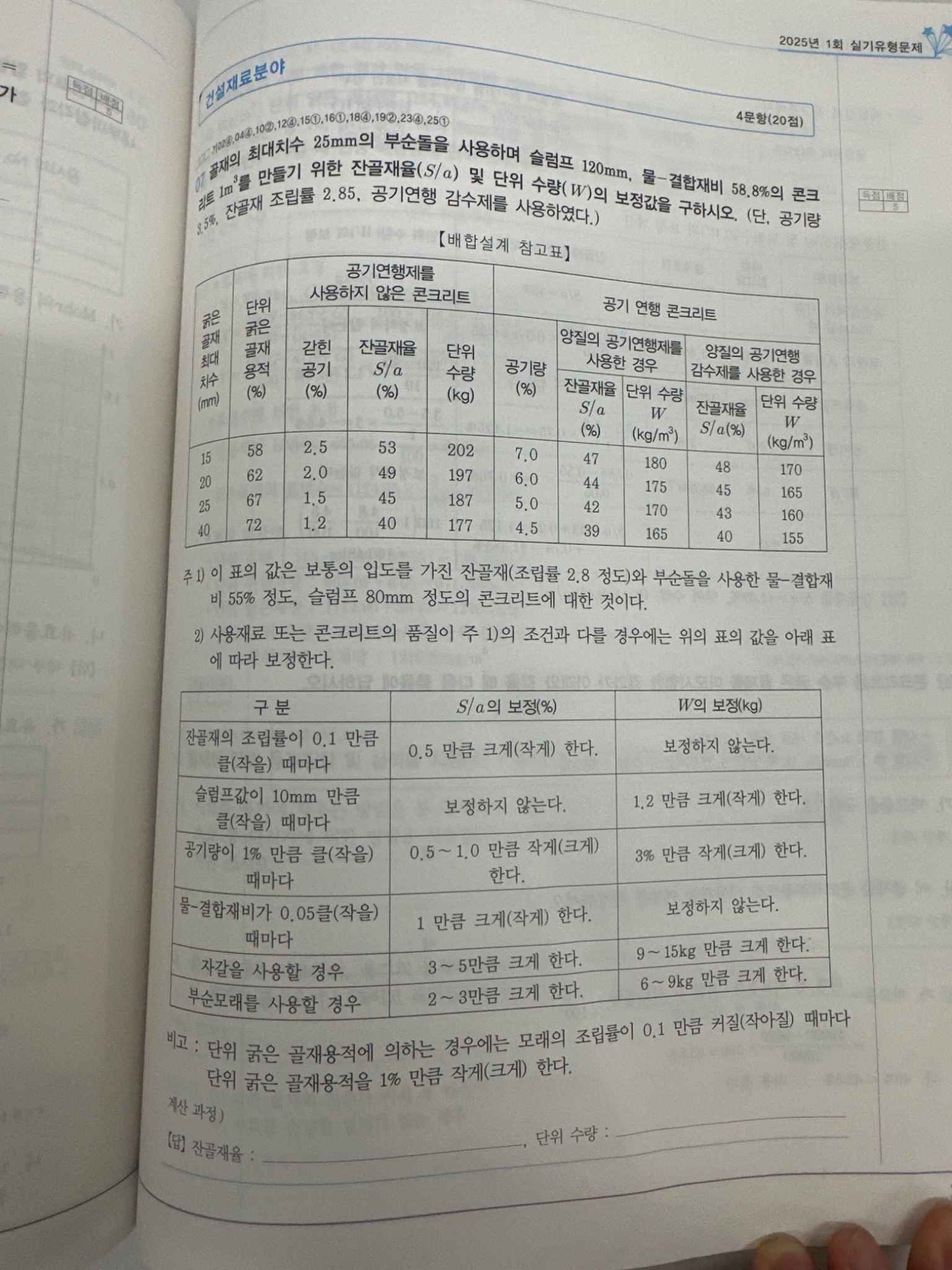 • 문제 정답이 오류가 있는거 같아서 문의드립니다. 건설재료시험기사 25년도 1회 7번문제 답이 이상한거 같습니다.