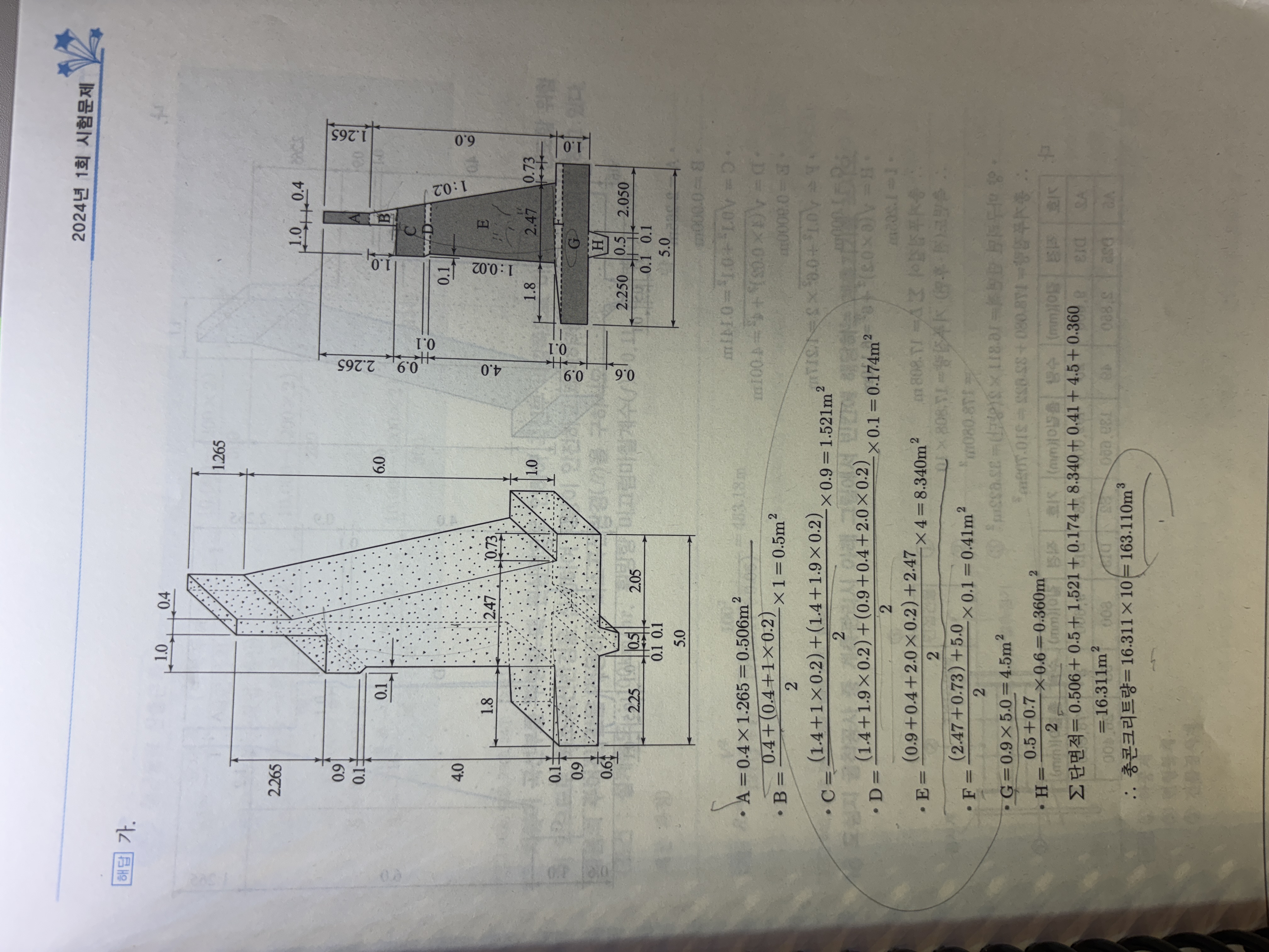 토목기사 실기 물량산출 반중력형 콘크리트량