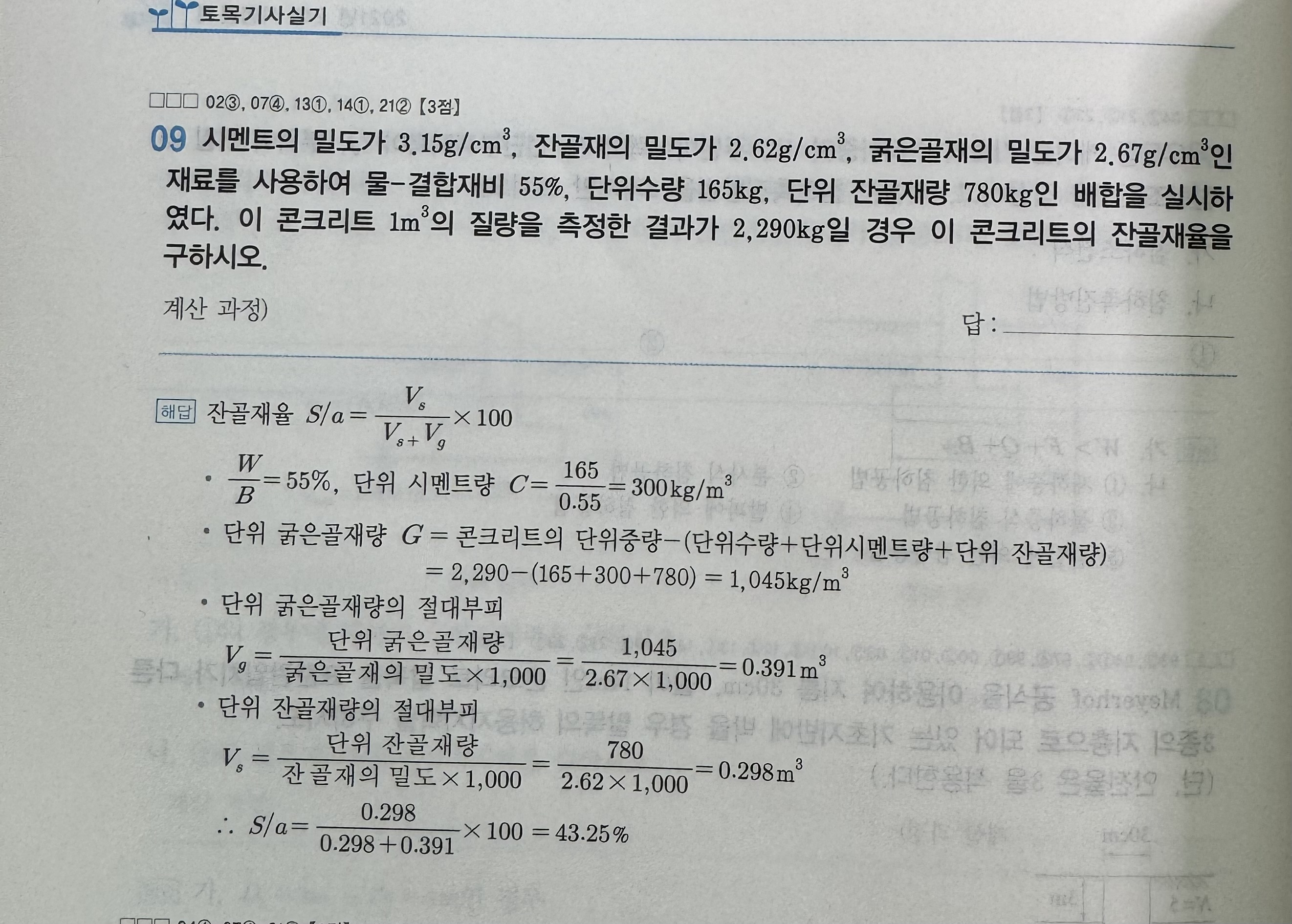 풀이에 적힌 w/B의 B가 결합재 인데 결합재가 결국 시멘트라서 그 옆에 단위시멘트C라고 적힌것인지 궁금합니다