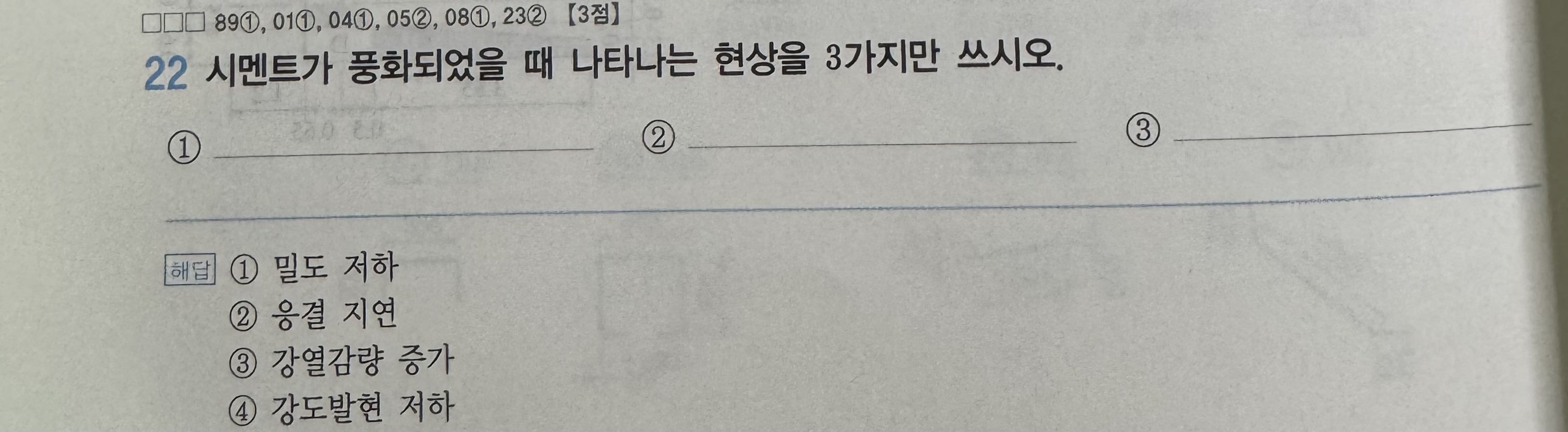 3. 교재의 시멘트라 적힌 부분들이 모든 문제에서 결합재로 바뀌었는데 시멘트도 맞는말인가요?