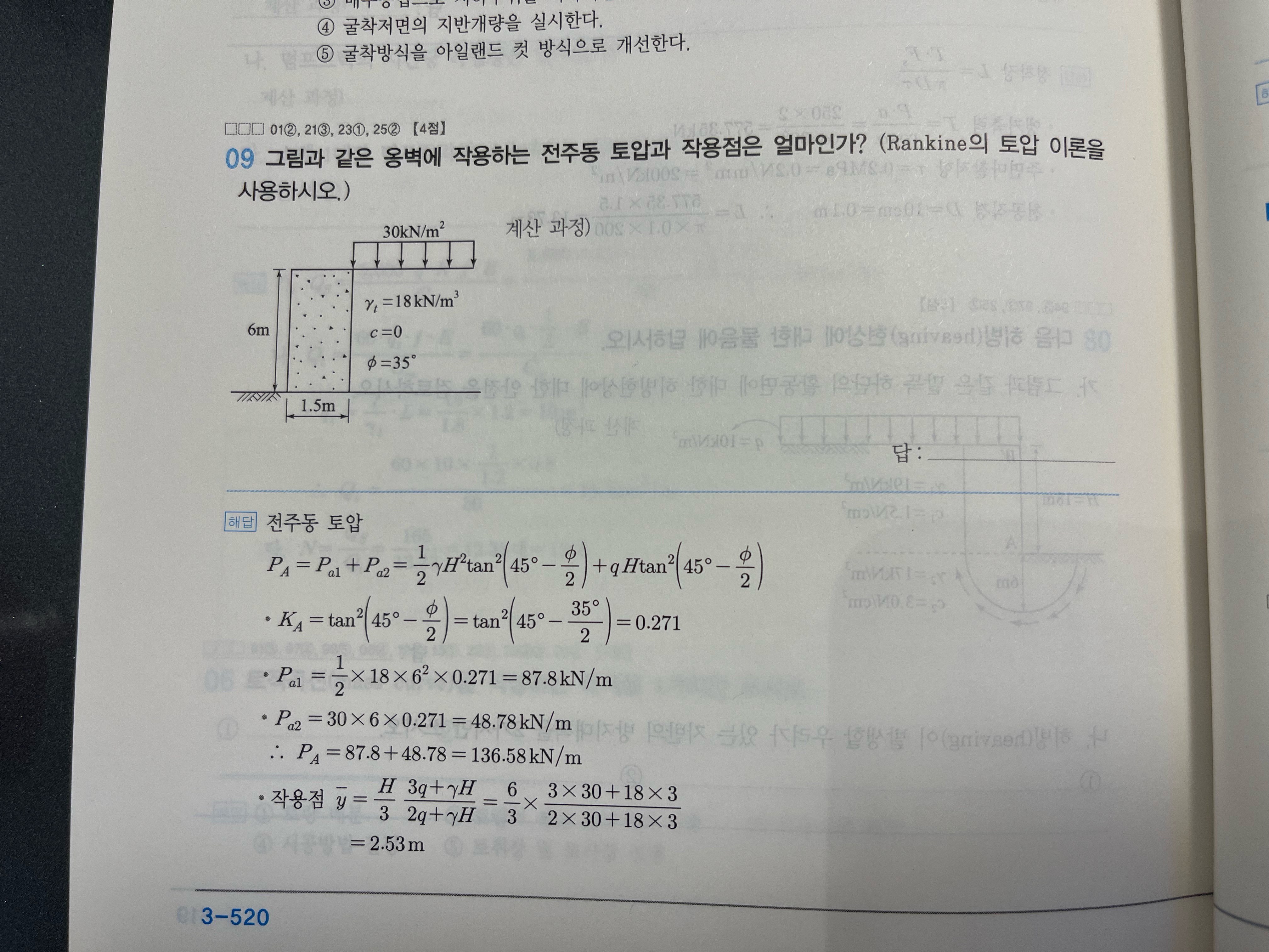 옹벽의 높이 H는 3이 아닌 6을 적용하여야 합니다.