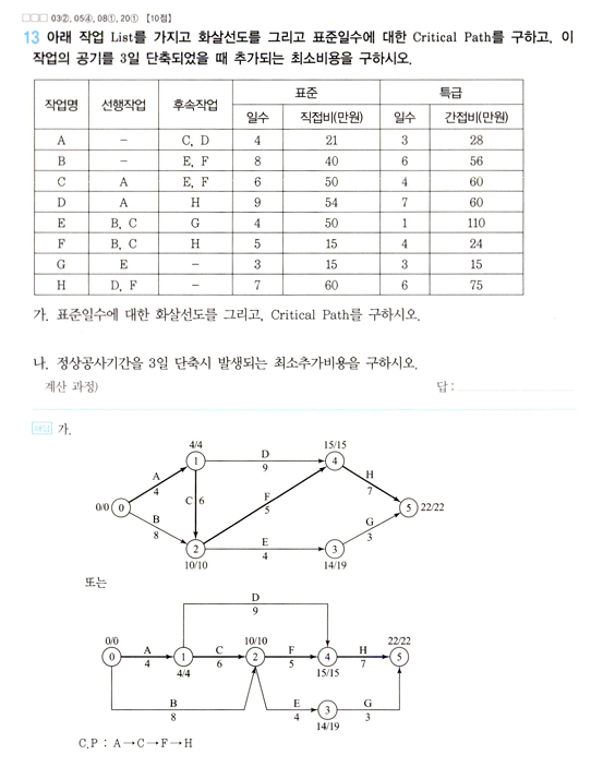20년도 1회차 13번 공정관리문제