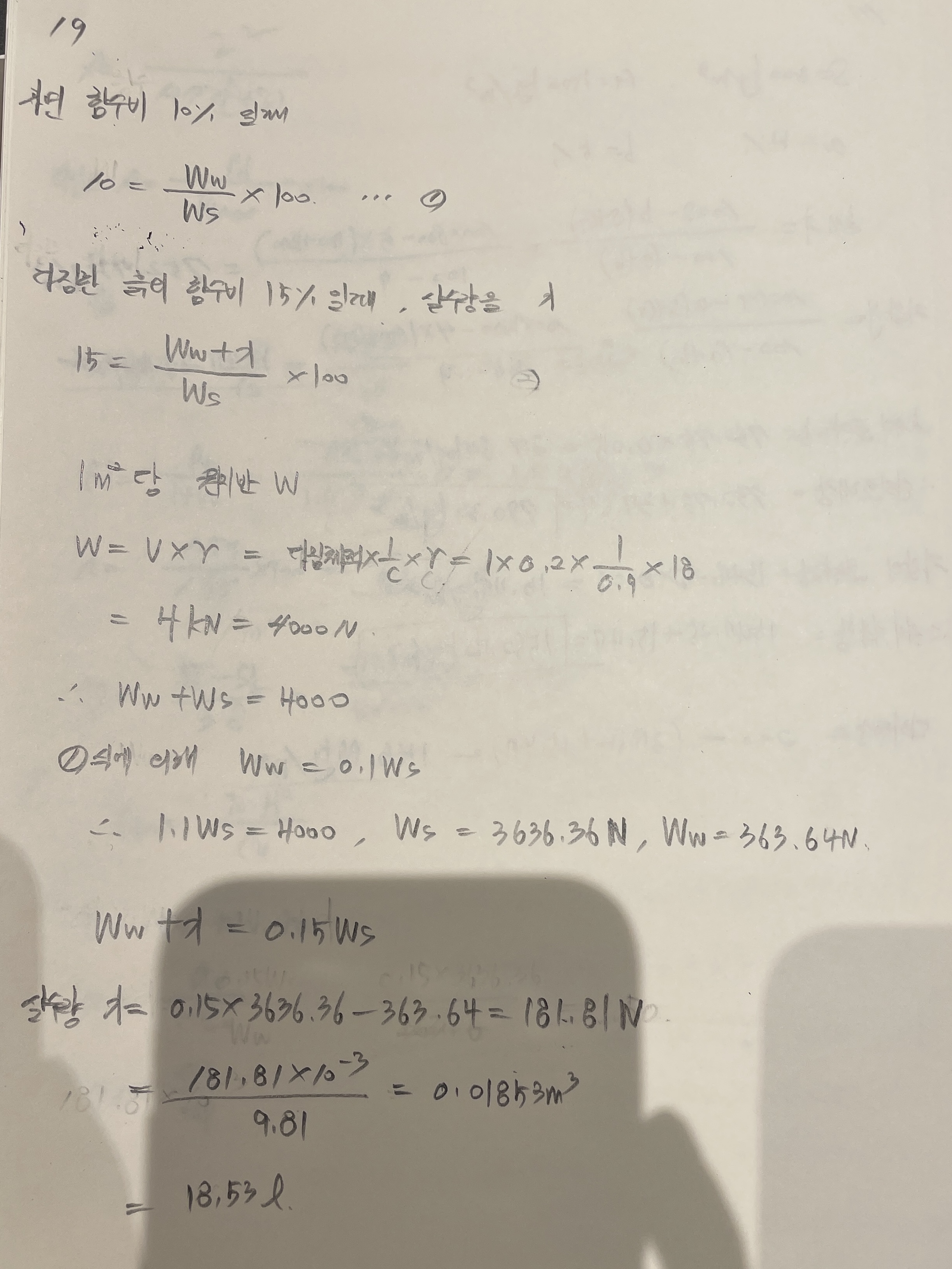 • 2018 1회 19번 살수량 문제 교수님이 해설에서 풀어주신대로 산출근거를 적고싶은데 사진에 있는 풀이대로 적으면될까요? 수정해야 할 곳이있으면 말씀 부탁드립니다 !