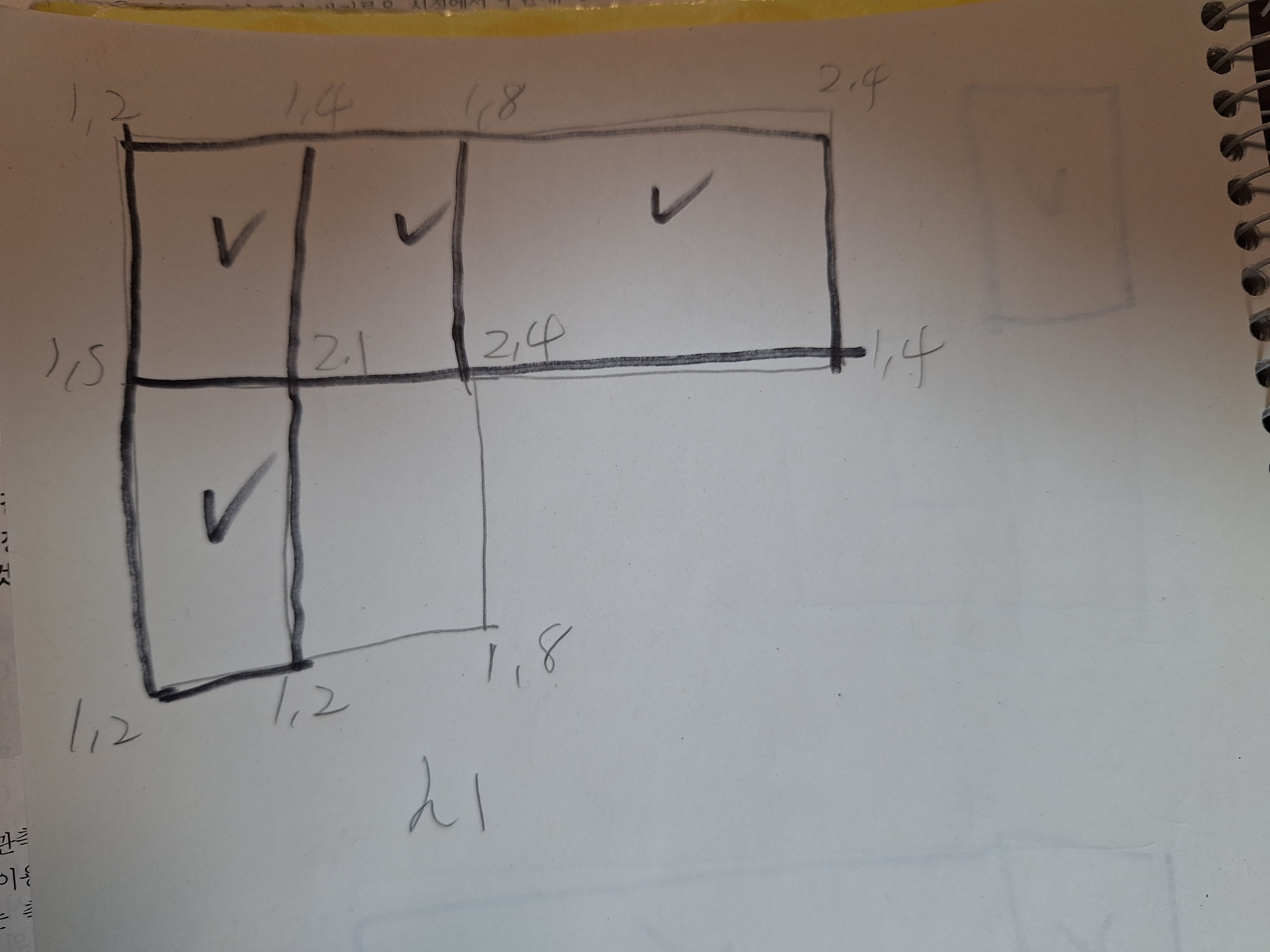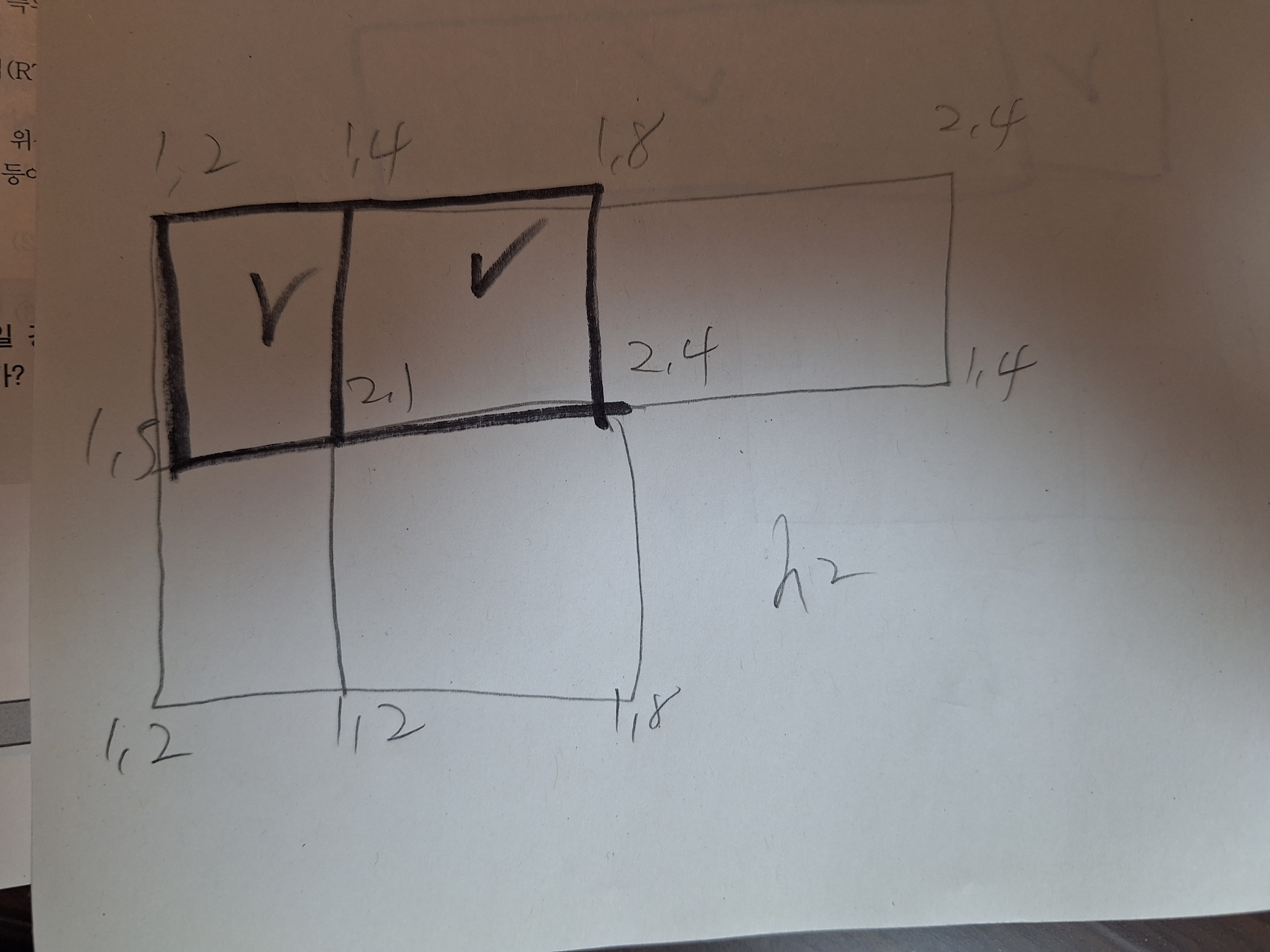 그려주신 그림과 같이 사각형이 1개만 영향을 주는 높이를 h1, 2개가 만나는 곳은 h2, ....... 이렇게 이해하셔야 합니다.