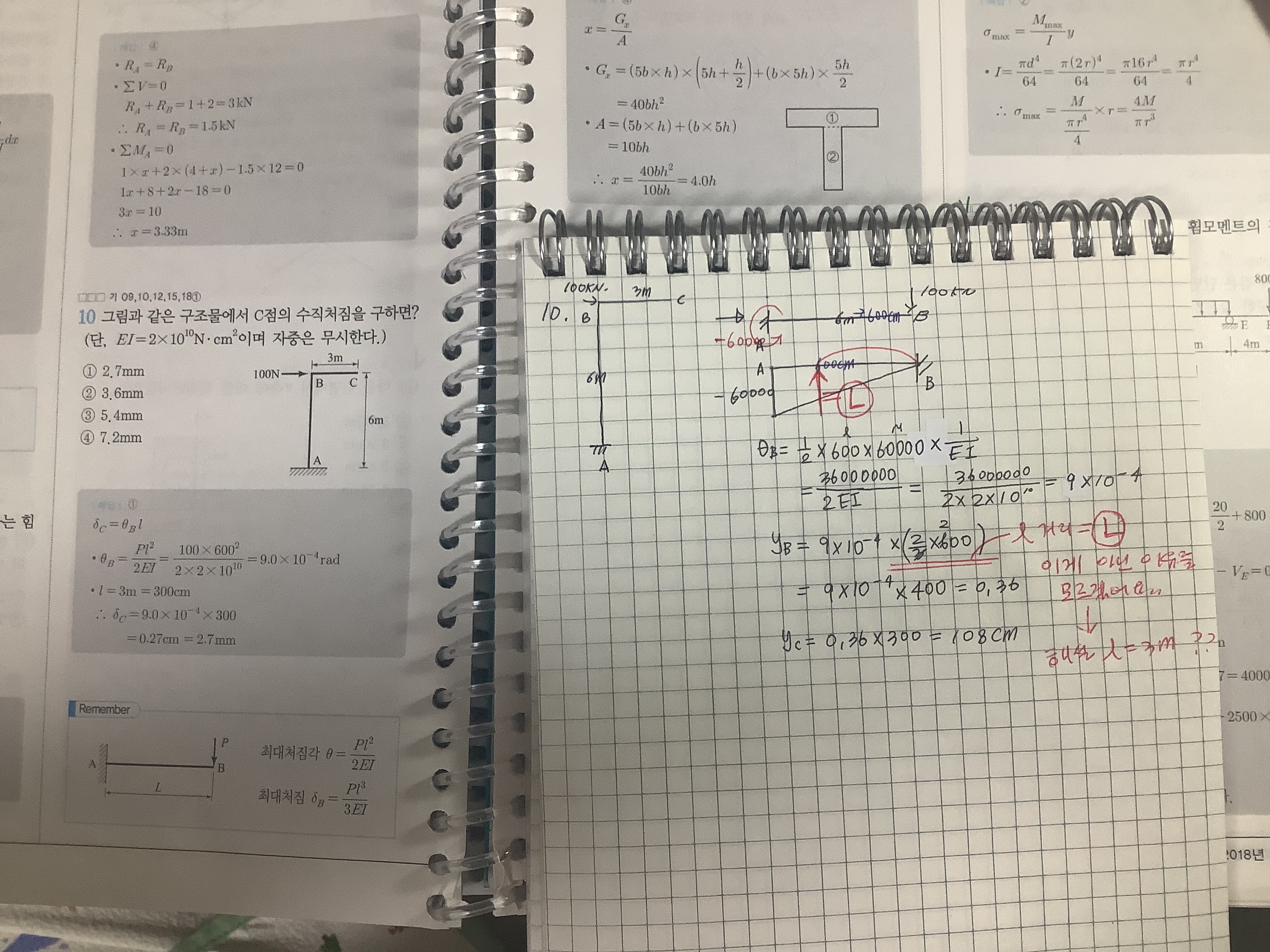 안녕하세요 교수님!수직처짐 문제를 풀때때먼저 캔틸레버보 집중하중으로 처짐각 구하고, 처짐을 구하려고 하는데