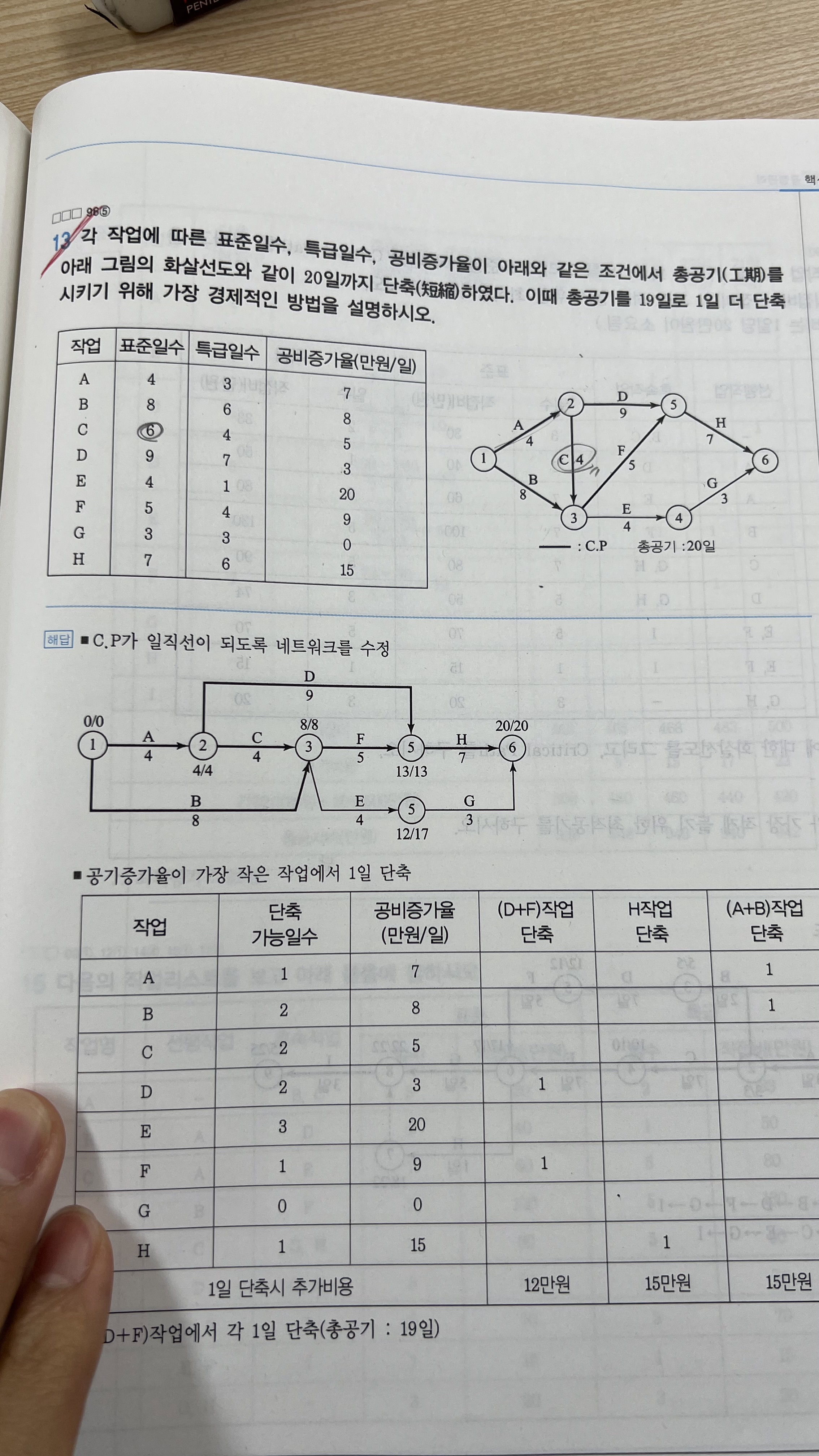 안녕하세요~~네트워크 공정표 작성시 표준일수를 사용하는 것으로 알고 있는데 이때 문제 자체에 오류가 있던건가요 ??