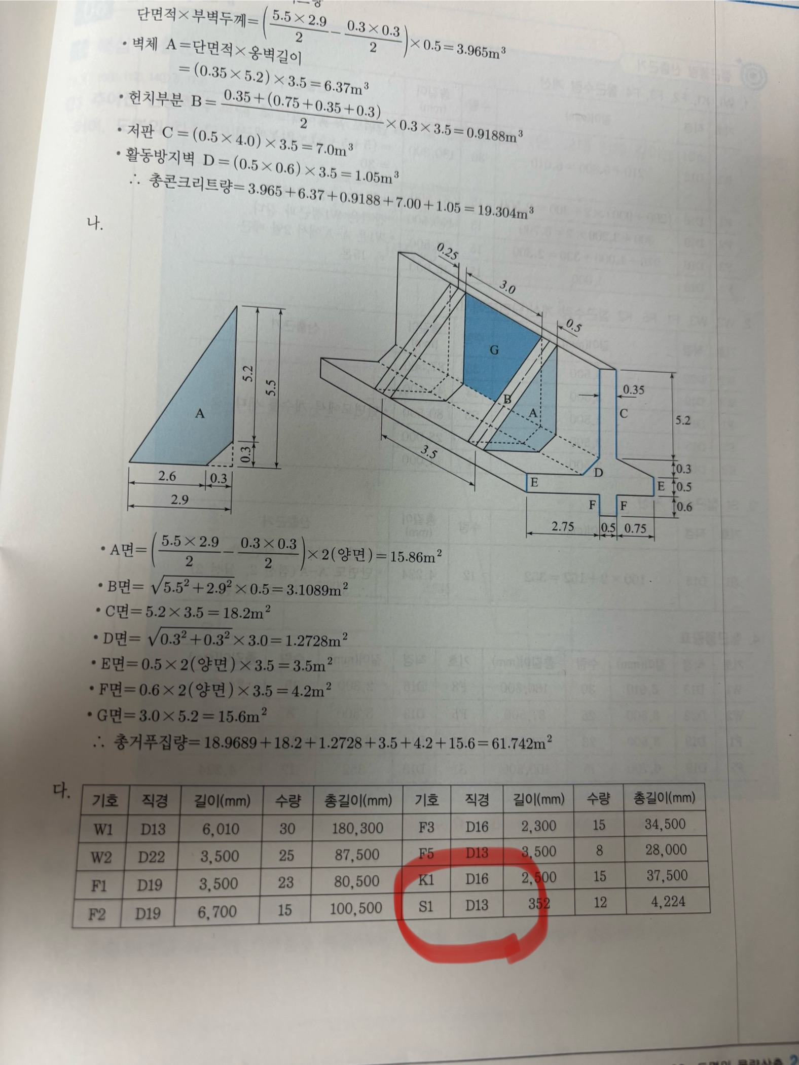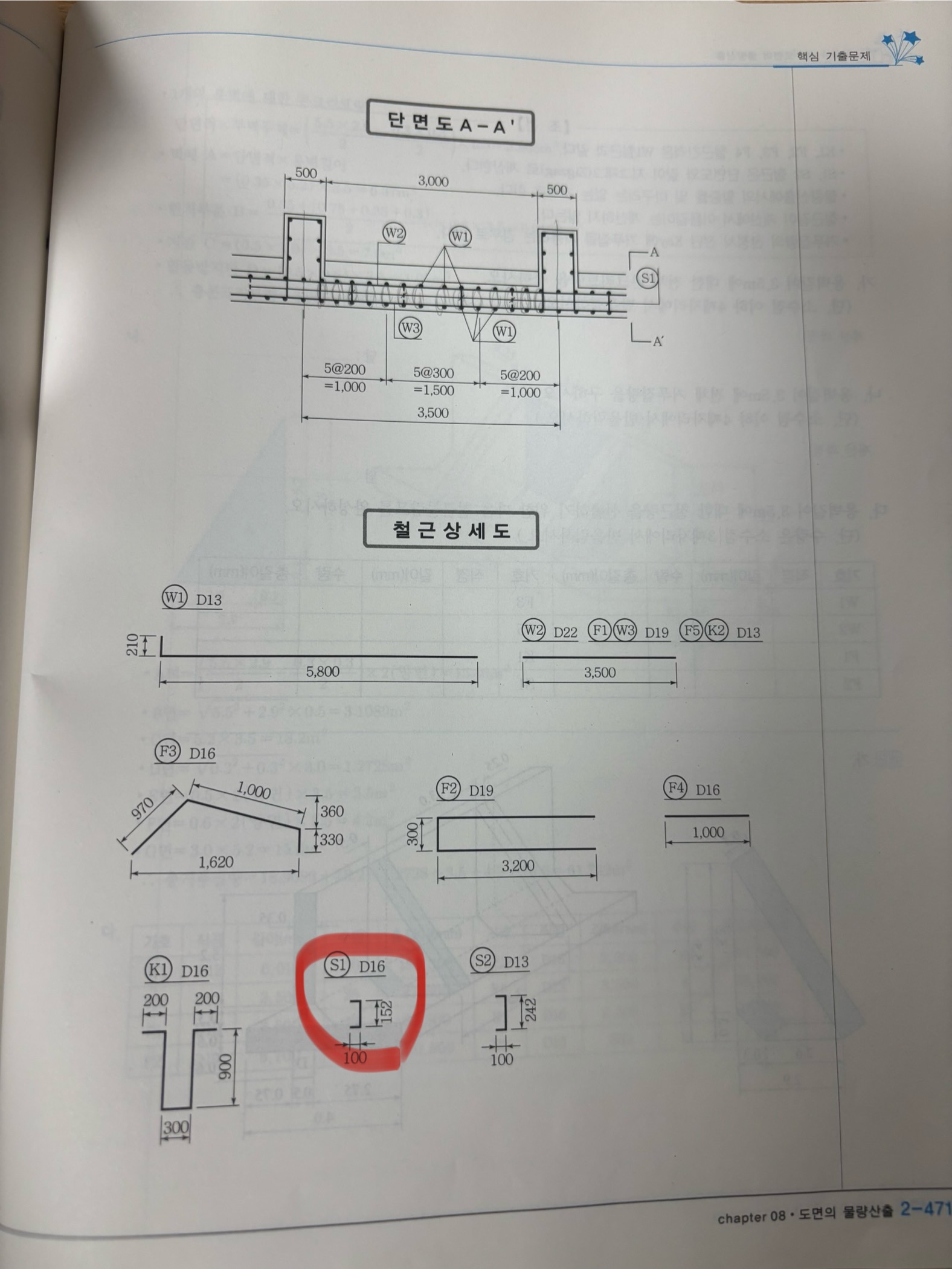 철근상세도를 보면 S1은 D16이라 되어있는데 해답을 보면 D13으로 되어있는데 D16이 맞나요?