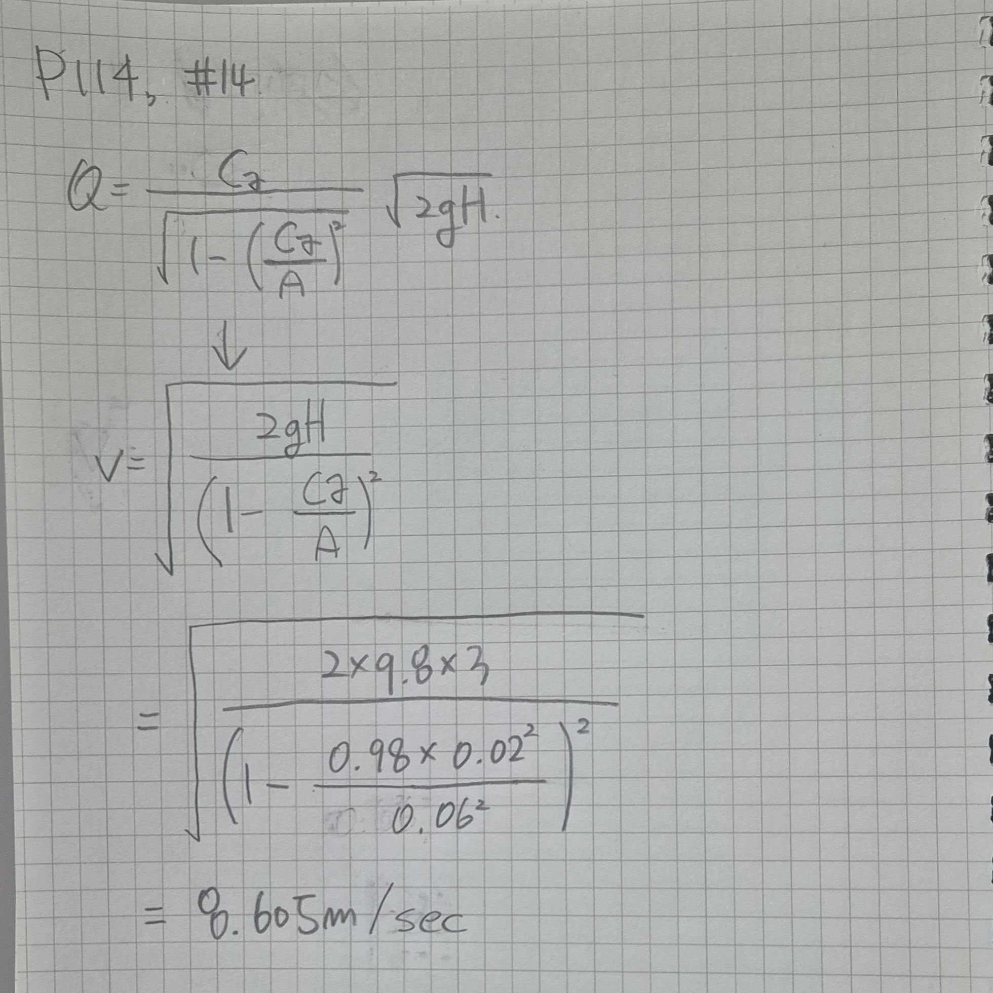 2026 수리학 및 수문학 >P114, 14번 문제 문의드립니다.