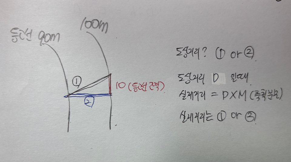 이때 말하는 도상거리는 경사거리 인가요? 수평거리 인가요?