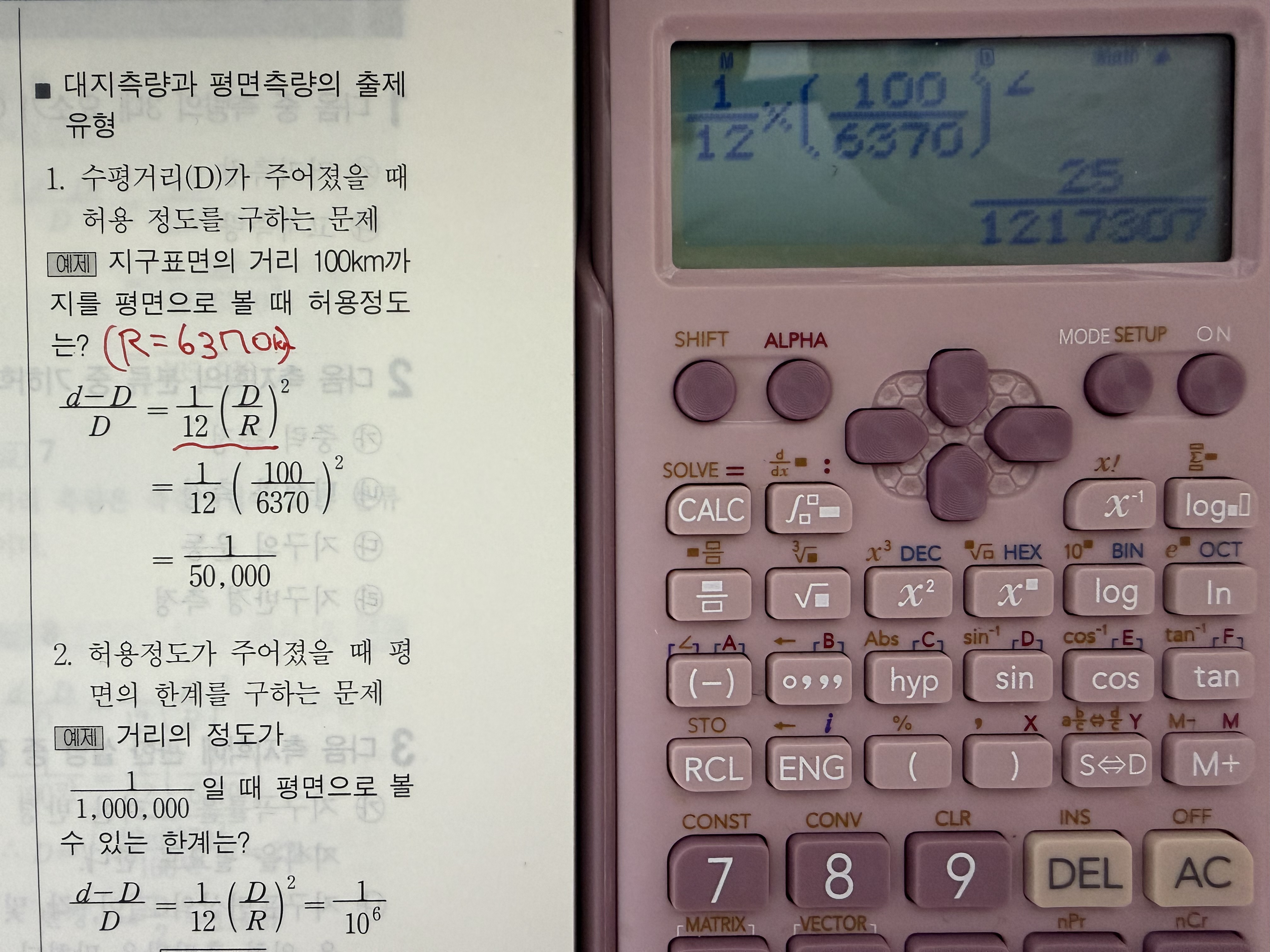 측량학 5p 예제가 계산기에서 틀리게 나와요 제가 뭘 잘못한 걸까요?