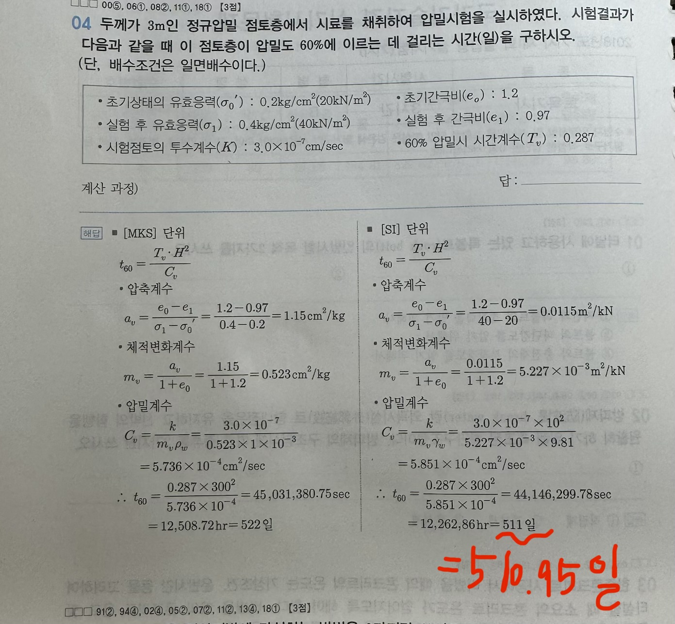 문제의 조건에 압밀시간을 일수로 표현하라는 조건이 있기때문에 올림하여 정수로 표현하셔도 되고 질문하신 내용처럼 소수로 표현하셔도 됩니다.