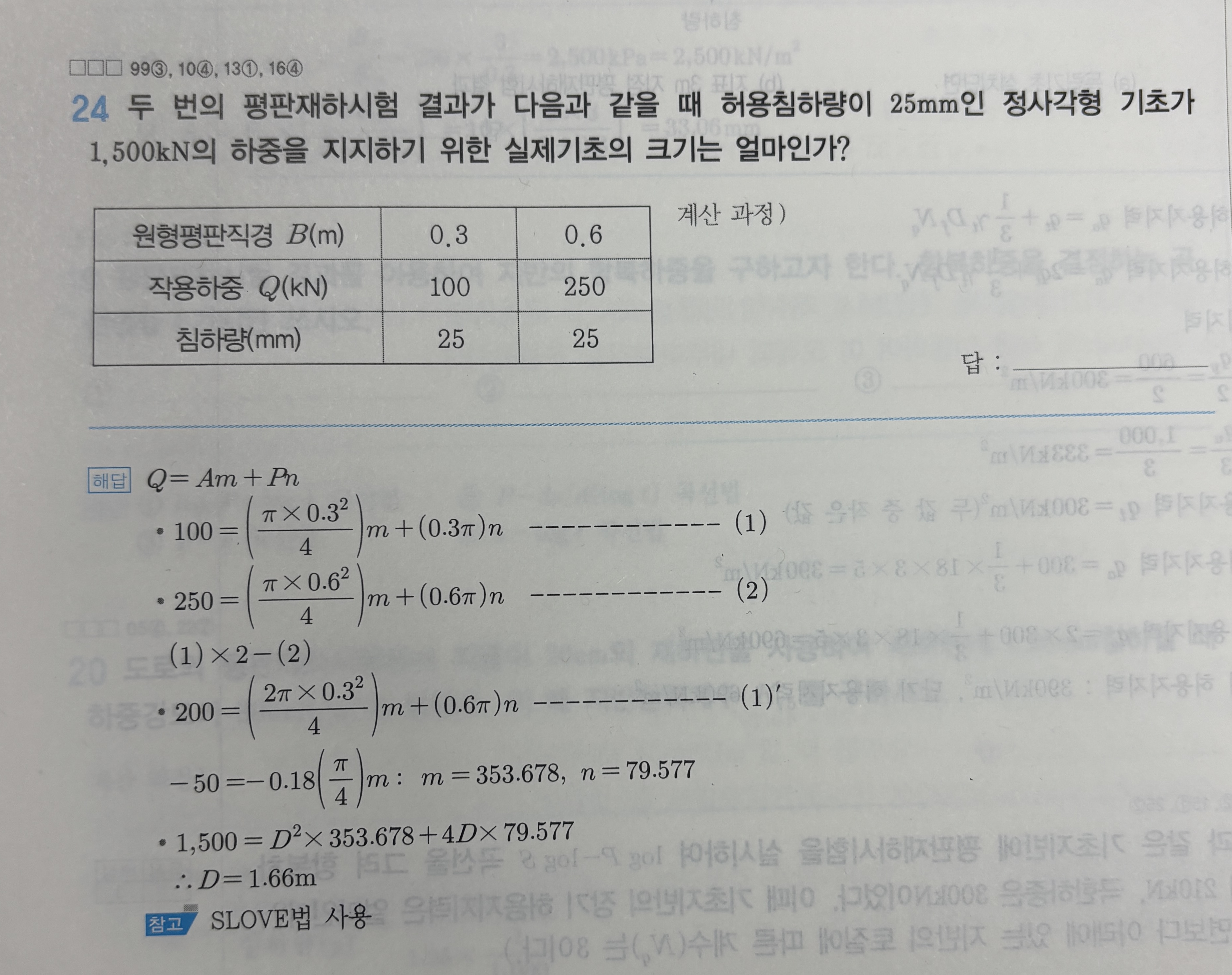 하지만 정사각형 기초의 크기는 면적이아니라 가로세로의 길이(가로세로 길이가 달라도 면적이 같아질수 있기 때문)로 답을 산정하여야 합니다.