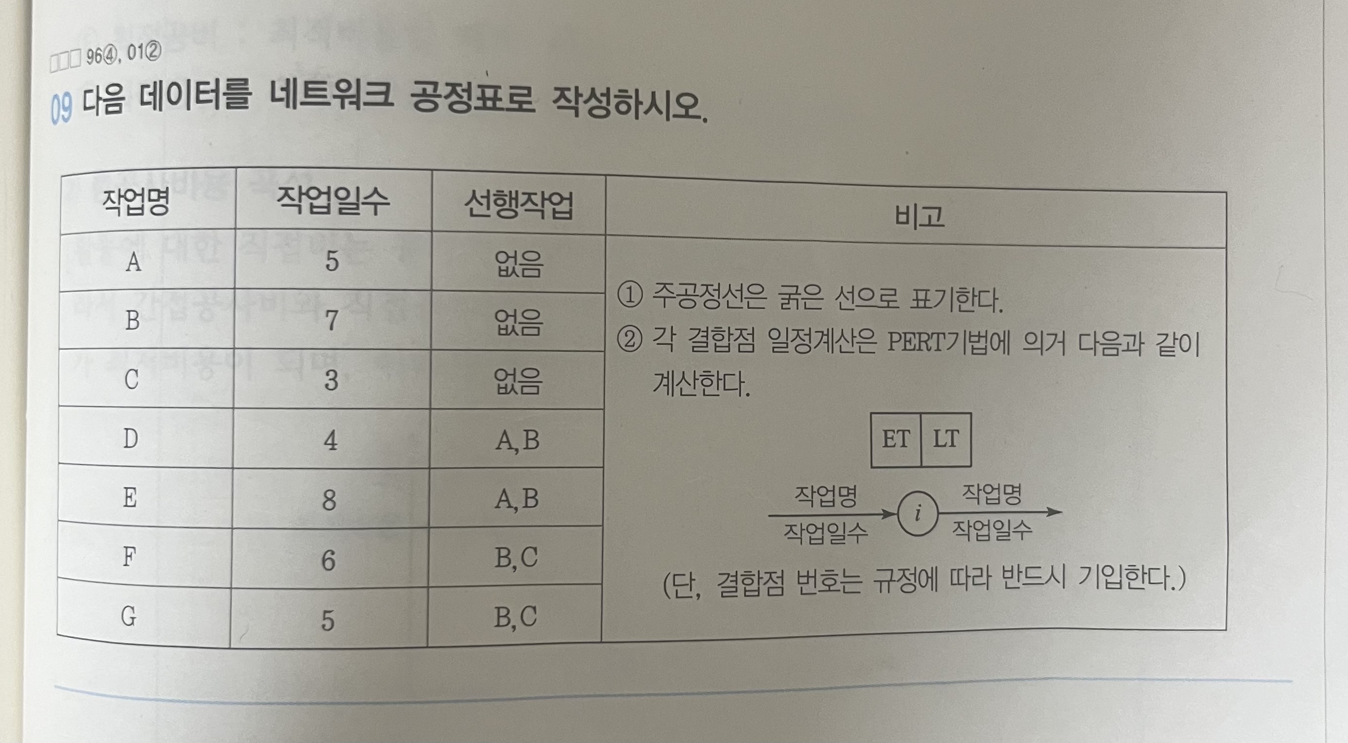 제가 그린 공정표가 답에 나온 방법2가지랑 다르게 그려지던데 답으로 인정받을수있을까요..?