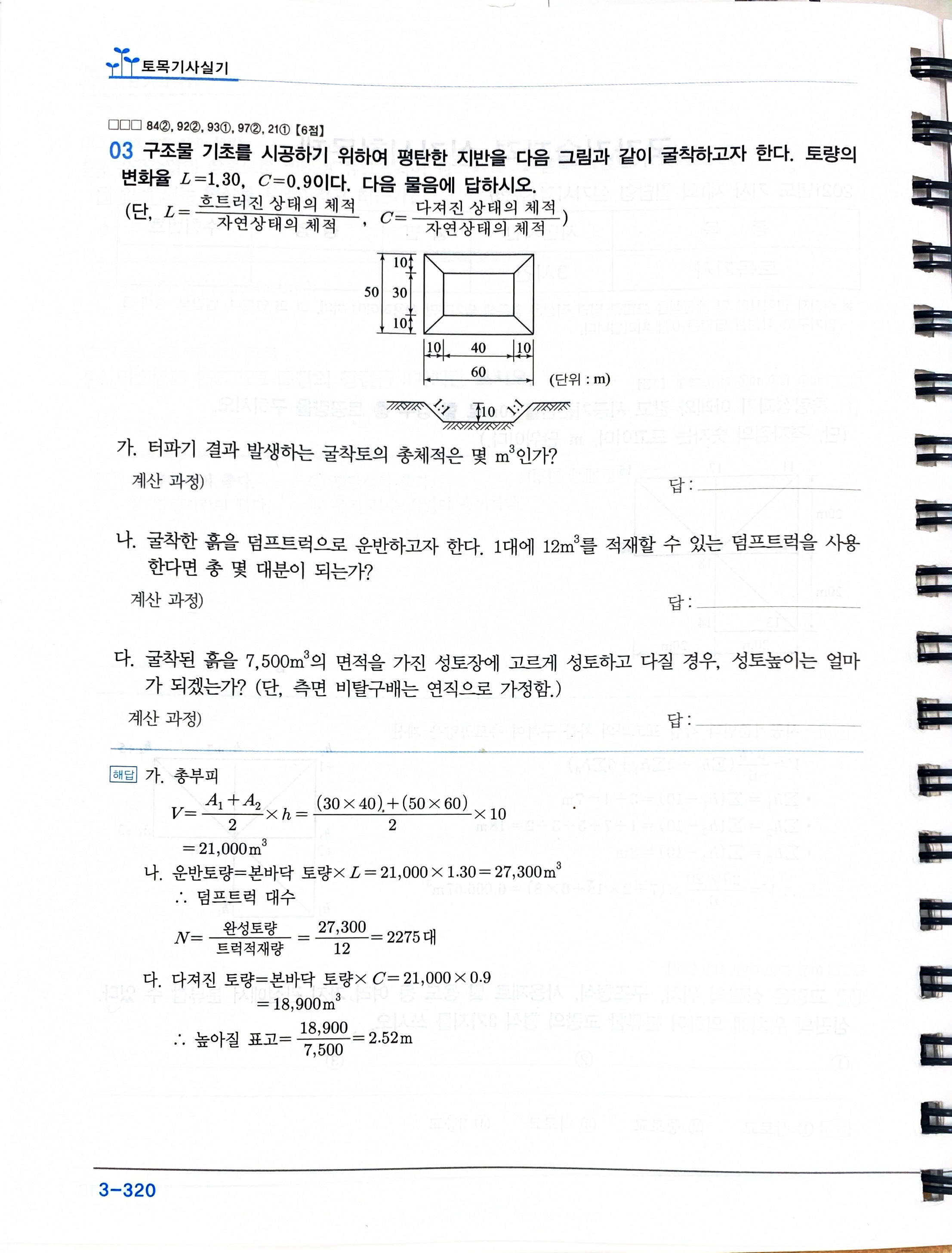 이 문제에서 가 번이 이해가 안 됩니다. 굴착토량을 구하라고 했으면 자연상태에서 굴착한 후의 토량이 되어야하는거 아닌가요??